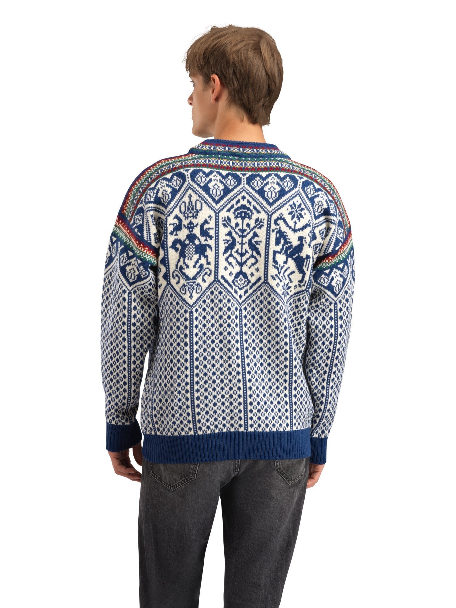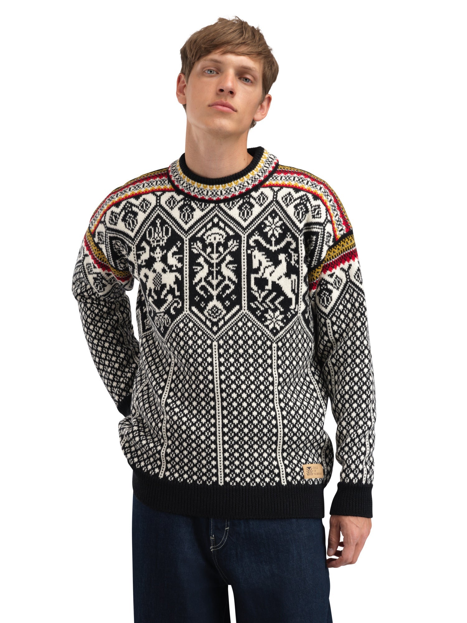 Una versione moderna di uno dei nostri più grandi successi di sempre, il nostro maglione ufficiale delle Olimpiadi invernali del 1994 a Lillehammer. Anche se la forma è stata aggiornata per avere una vestibilità regolare, il motivo è rimasto più o meno lo stesso dell'originale: è fatto di simboli e personaggi della mitologia nordica. Un classico di quasi 30 anni fa è stato aggiornato e ha un look moderno.