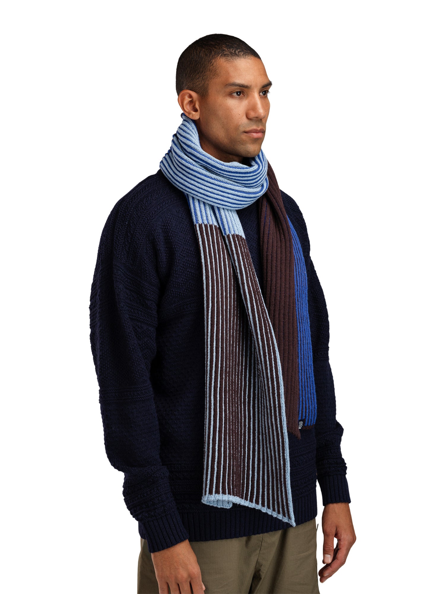 De Skarstind-sjaal heeft een dynamische kleurenmix in een speels streepjesontwerp dat elke outfit wat extra pit geeft. Aan de ene kant zorgen levendige strepen voor een gedurfde, energieke look, terwijl de achterkant een subtiel driekleurig blokontwerp heeft voor als je het wat rustiger aan wilt doen. Deze veelzijdige sjaal past zich moeiteloos aan je stemming en gelegenheid aan en biedt twee verschillende stijlen in één. De Skarstind-sjaal van 100% lichte ribgebreide wol biedt zowel warmte als elegantie.