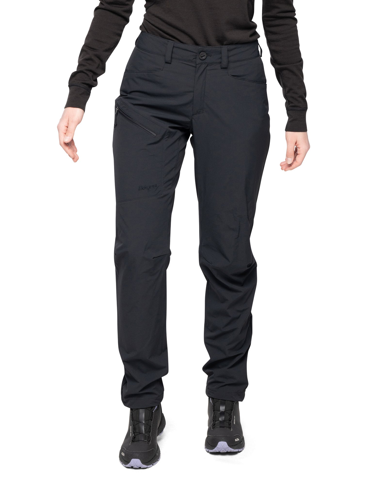 Die Vaagaa Light Softshell Pants von BERGANS für Damen ist eine leichte, bequeme Softshell-Hose für Wanderungen und Alltag.