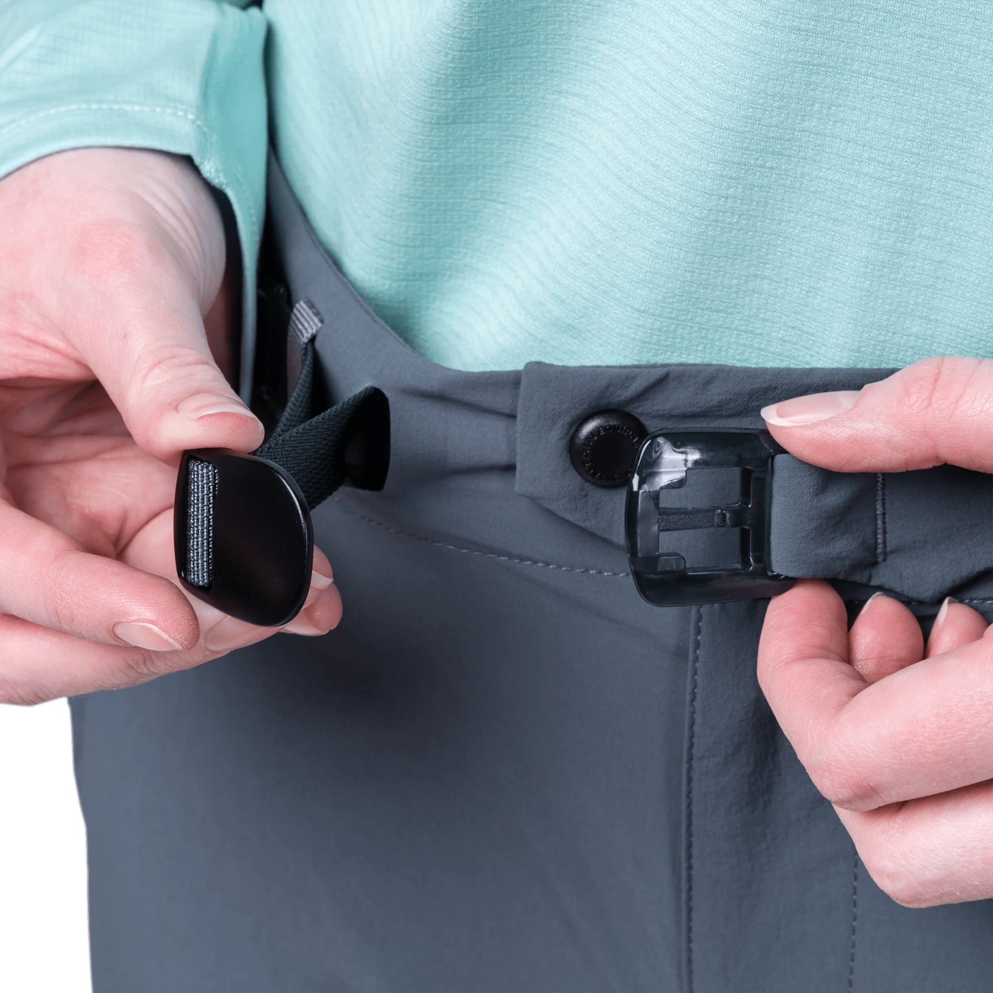 • Integrierter Gürtel und doppelter Druckknopf am Bund